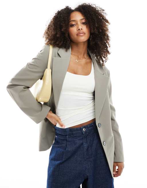 Pull&Bear – Oversize-Blazer in Sand mit zwei Knöpfen, Kombiteil