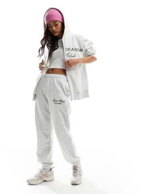 Pull&Bear – Oversize-Jogginghose in Grau meliert mit „Sport Club“-Print, Kombiteil