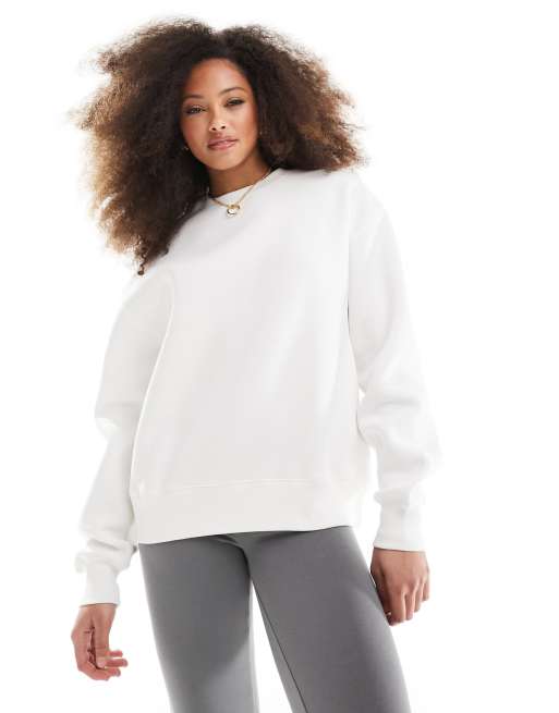 Pull&Bear – Oversize-Pullover in Weiß mit Rundhalsausschnitt