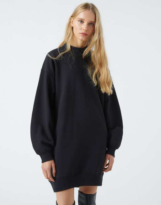 Pull&Bear – Oversized-Sweatshirtkleid in verwaschenem Schwarz
