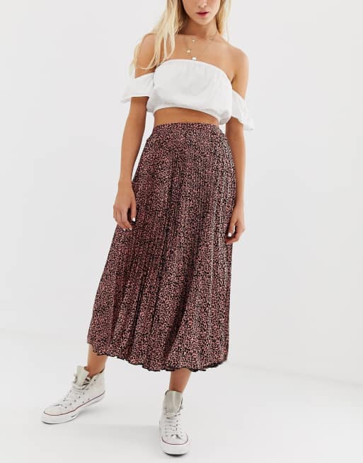 Pull&Bear – Plissierter Midirock in Animalprint