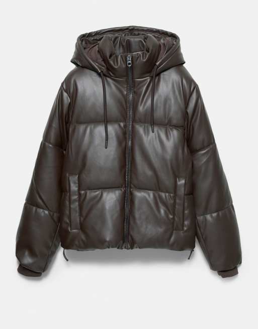 Pull&Bear – Pufferjacke in Braun mit Kapuze
