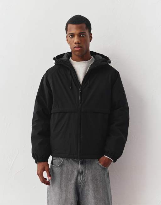 Pull&Bear – Pufferjacke in Schwarz mit hohem Kragen