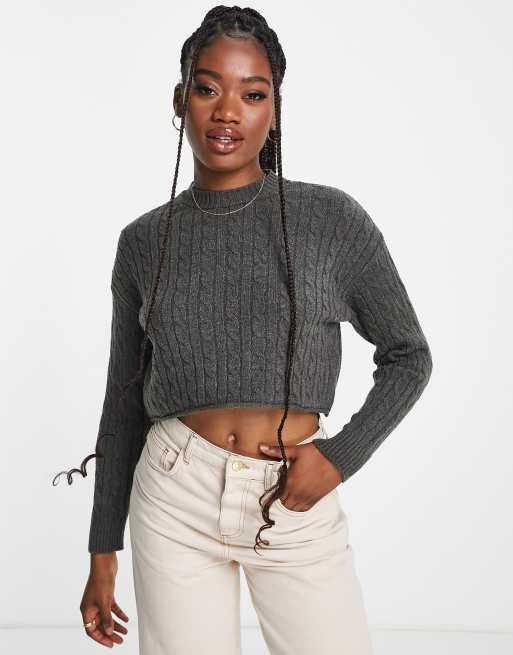 Pull&Bear – Pullover in Anthrazit mit kurzem Schnitt und Zopfmuster