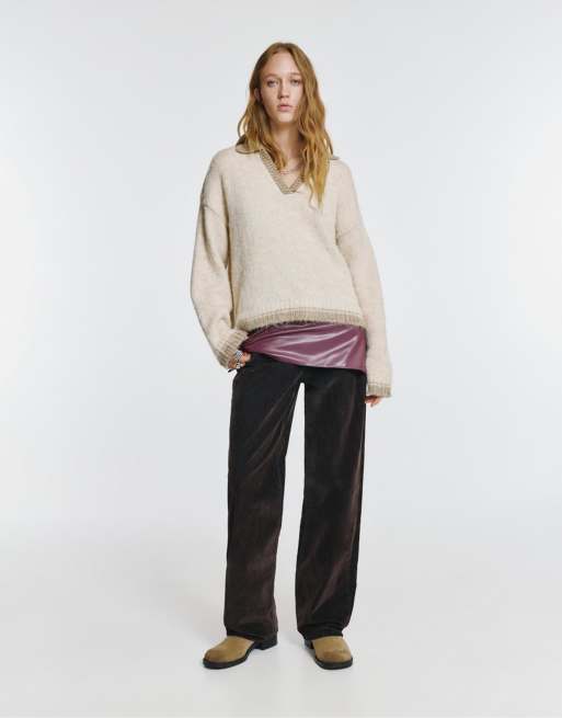 Pull&Bear – Pullover in Beige mit Polokragen