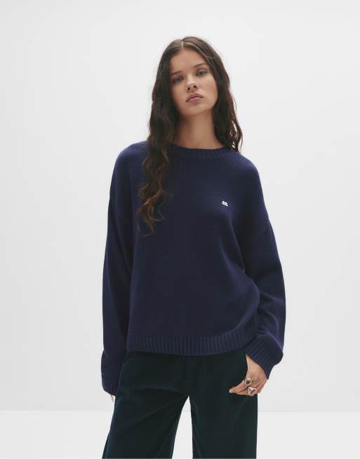Pull&Bear – Pullover in Marineblau mit Logo-Stickerei