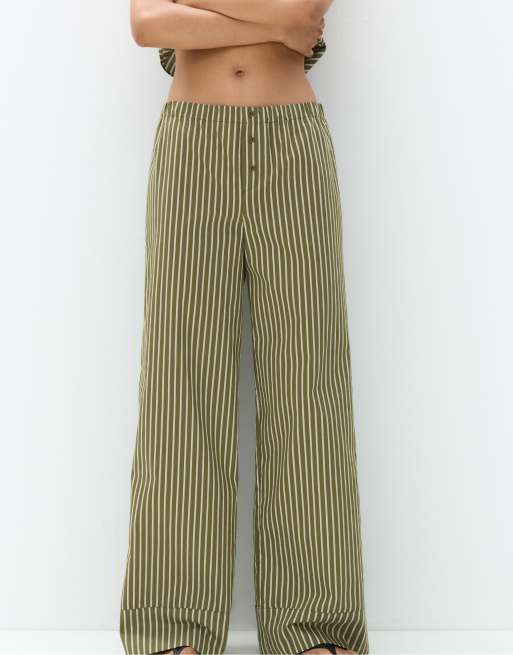 Pull&Bear – Pyjamahose in Grün gestreift