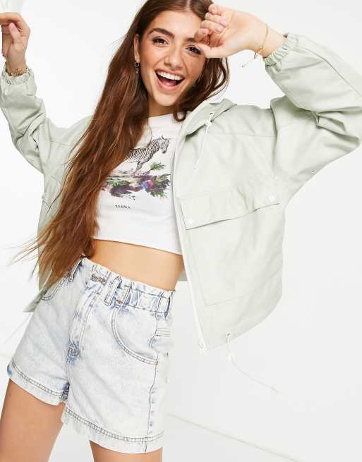 Pull&Bear – Regenjacke mit Taschen und Kapuze in Minzgrün