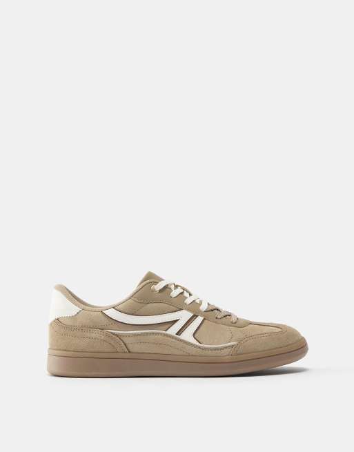 Pull&Bear – Retro-Sneaker zum Schnüren in Sandgelb
