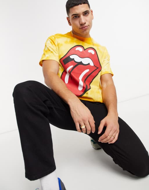 Pull&Bear – Rolling Stones – Langärmliges T-Shirt mit Batikmuster
