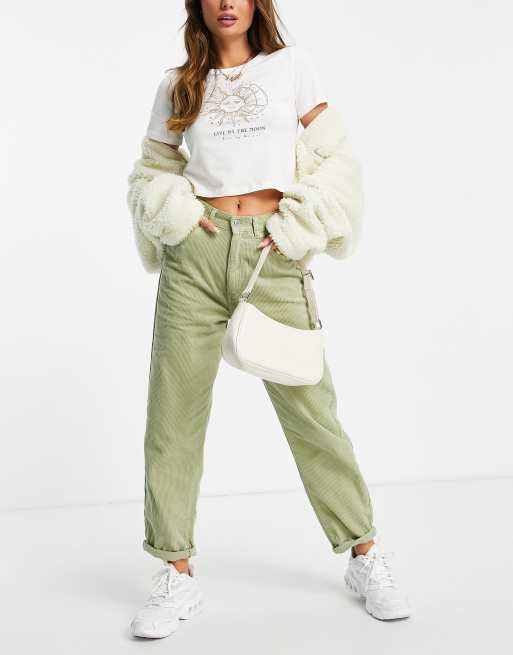 Pull&Bear – Schlichte Mom-Hose aus Cord in Khaki