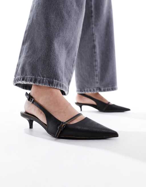 Pull&Bear – Schuhe in verglühtem Schwarz mit Kitten-Heel-Absatz und Fersenriemen mit Schnallendetail