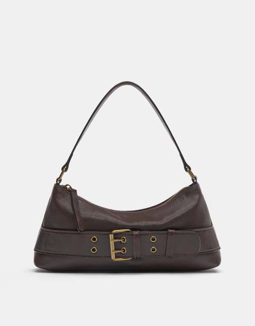 Pull&Bear – Schultertasche in Braun mit Schnalle