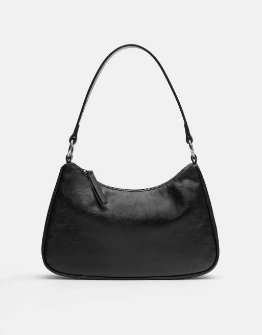 Pull&Bear – Schultertasche in Schwarz mit Ringen