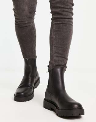 Pull&Bear – Schwarze Chelsea-Stiefel mit dicker Sohle