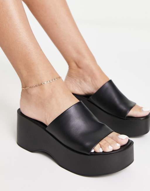 Pull&Bear – Schwarze Flatform-Sandalen