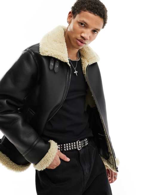 Pull&Bear – Schwarze Pilotenjacke aus Lederimitat
