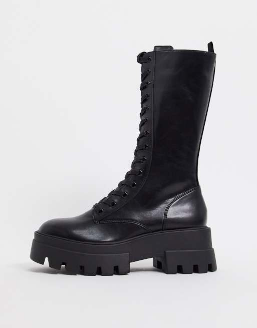 Pull&Bear – Schwarze Schnürstiefel mit Profilsohle