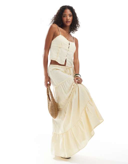 Pull&Bear – Set in Buttermilchgelb, aus gestuftem Maxirock und Oberteil