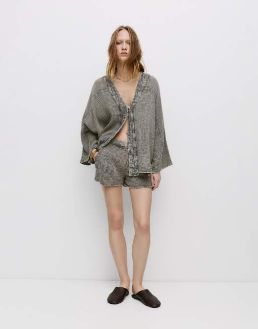 Pull&Bear – Shorts in Blassgrau mit Knitteroptik