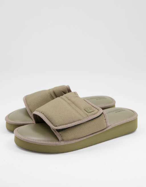 Pull&Bear – Slider-Hausschuhe in Khaki