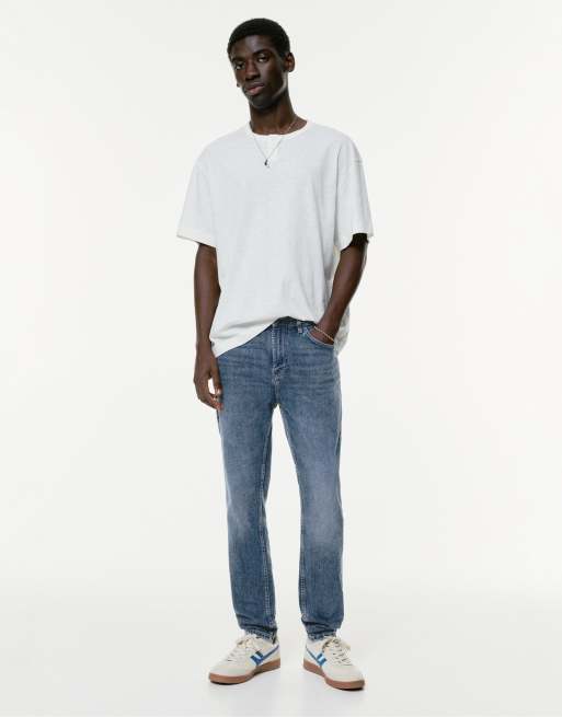 Pull&Bear – Slim Fit Jeans in Mittelblau