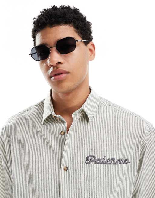 Pull&Bear – Sonnenbrille in Schwarz mit Metallrahmen