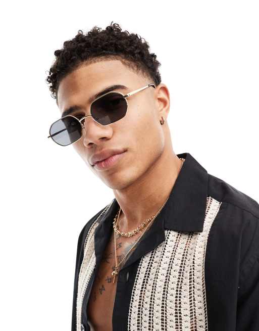 Pull&Bear – Sonnenbrille mit sechseckigem Metallgestell in Goldoptik