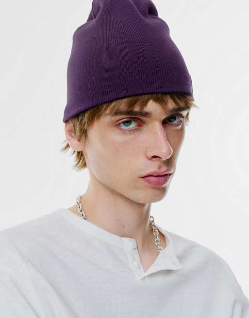 Pull&Bear – Strickmütze in Lila mit „Stwd“-Etikett