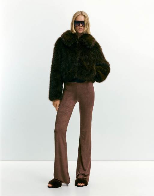 Pull&Bear – Strukturierte Schlaghose in Braun