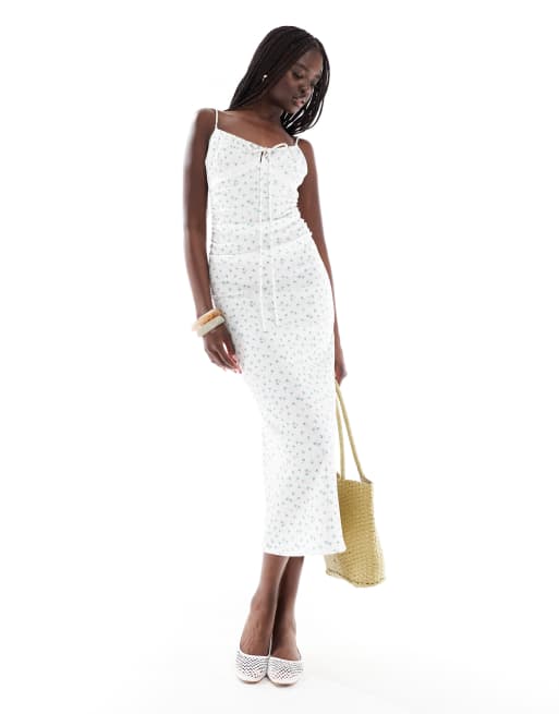 Pull&Bear – Strukturiertes Maxikleid in Weiß mit Blümchenmuster
