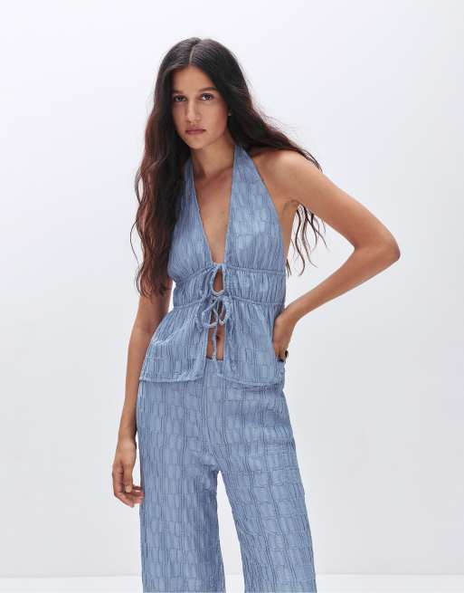 Pull&Bear – Strukturiertes Neckholder-Top in Blau