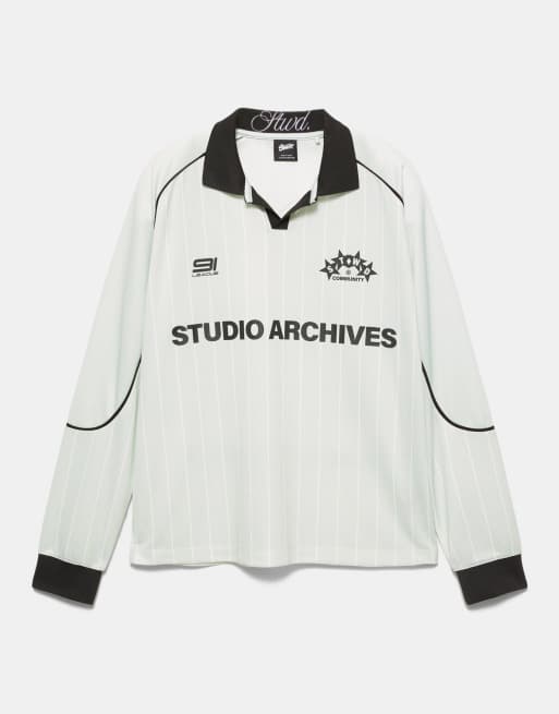 Pull&Bear – STWD – Fußball-T-Shirt in Grau mit „Studio Archives“-Print
