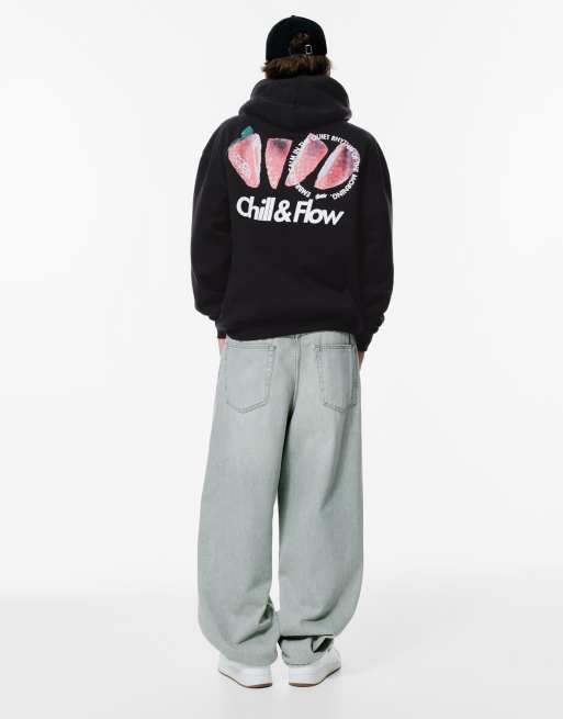 Pull&Bear – Stwd – Kapuzenpullover in Schwarz mit Erdbeer-Print