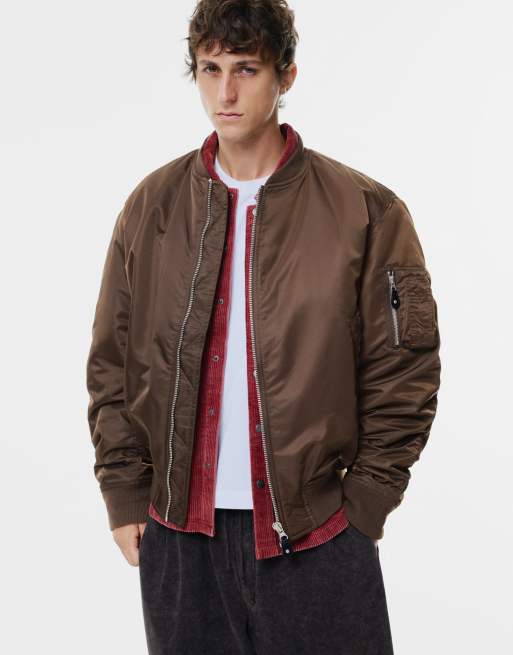 Pull&Bear – Stwd – Oversize-Bomberjacke in Braun