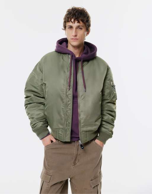 Pull&Bear – Stwd – Oversize-Bomberjacke in Khaki