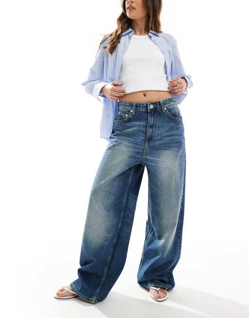Pull&Bear – Superweite Jeans in Dunkelblau