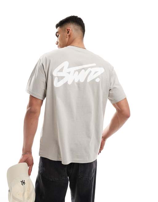 Pull&Bear – T-Shirt in Grau mit STWD-Rückenprint