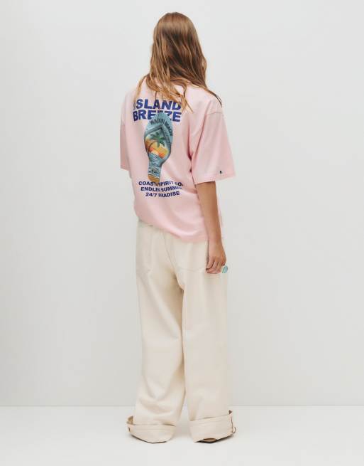 Pull&Bear – T-Shirt in Rosa mit Grafik