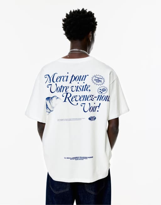 Pull&Bear – T-Shirt in Weiß mit Croissant-Print