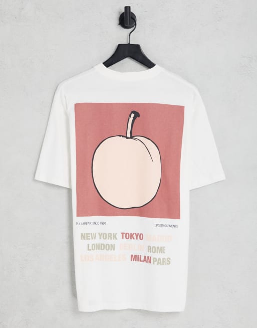 Pull&Bear – T-Shirt in Weiß mit Pfirsich-Rückenprint