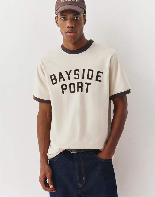 Pull&Bear – T-Shirt in Wollweiß mit „Bayside Port“-Print