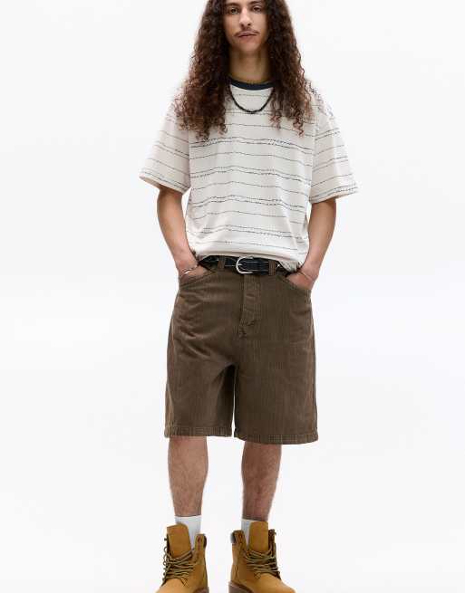 Pull&Bear – T-Shirt in Wollweiß mit Streifen und farblich abgesetztem Ausschnitt