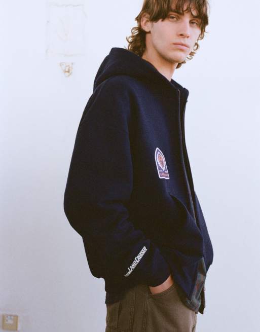 Pull&Bear – Toyota – Kapuzenjacke in Marineblau mit Reißverschluss