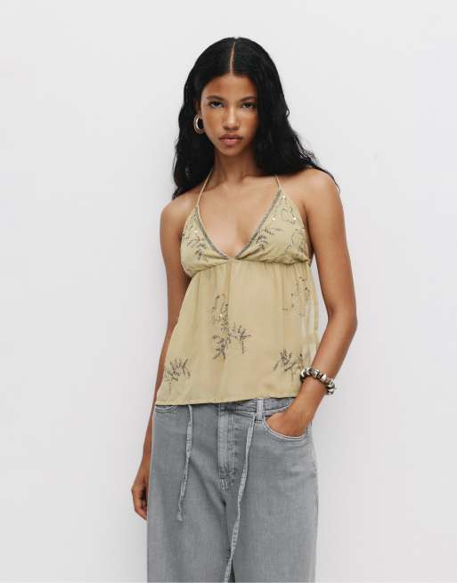 Pull&Bear – Trägeroberteil in Grün mit Rückenausschnitt