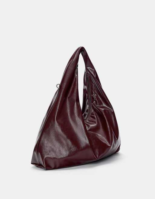 Pull&Bear – Tragetasche im Knitterlook in Burgunderrot