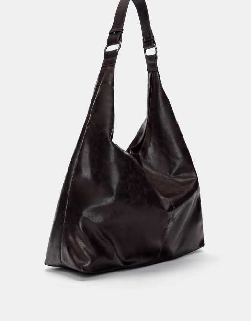 Pull&Bear – Tragetasche in Braun mit Used-Optik und Ring-Verzierung