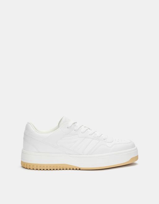Pull&Bear – Weiße Sneaker mit dicker Profilsohle