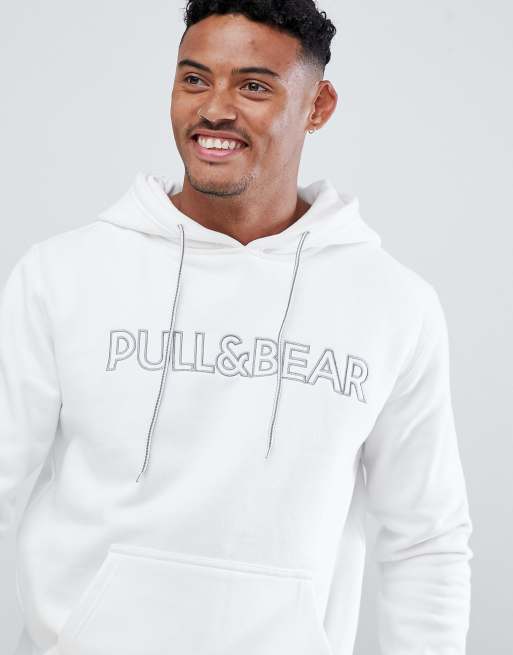 Pull&Bear – Weißer Kapuzenpullover mit Logo