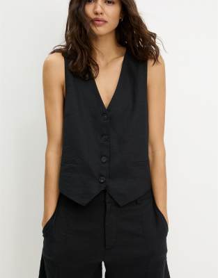 Pull&Bear – Weste in Schwarz in rustikaler Optik